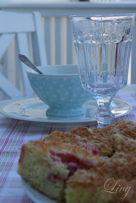 I mellom soling på veranda'n, lek med barna, klesvask, litt handling og en bot(Vææææ - min første, og jeg lover å aldri holde i en mobiltelefon mens jeg kjører bil igjen!) ble kaken bakt, og vi koste oss med den sammen med jordbær til ettermiddagskaffen♥